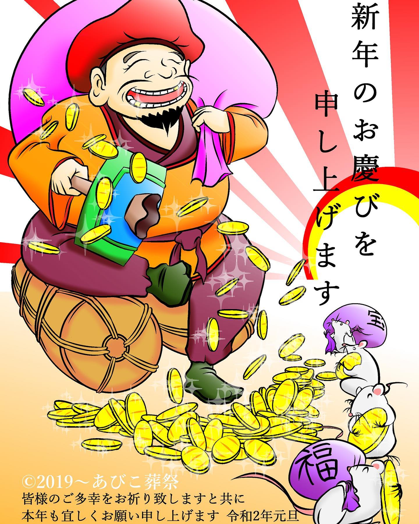 #年賀状#年賀状デザイン#年賀状2020#年賀状イラスト#2020年賀状#illustration#大黒天#ねずみ#gペン#放射#グラデーション#エアブラシ#あびこ葬祭#あびこ葬祭インスタ#あびこ葬祭Instagram#あびこ葬祭インスタグラム#デザイン#イラスト#葬儀屋#葬儀社#葬儀屋さん#絵描き